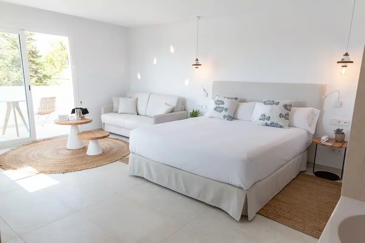 Boutique Hotel and Spa Las Mimosas is the perfect choice for those seeking an oasis of peace and relaxation in Ibiza. Las Mimosas boasts eleven junior suites and six spacious rooms, elegantly decorated in neutral tones and adorned with natural fabrics and wood, most of them offering views of the sea and the private pool.