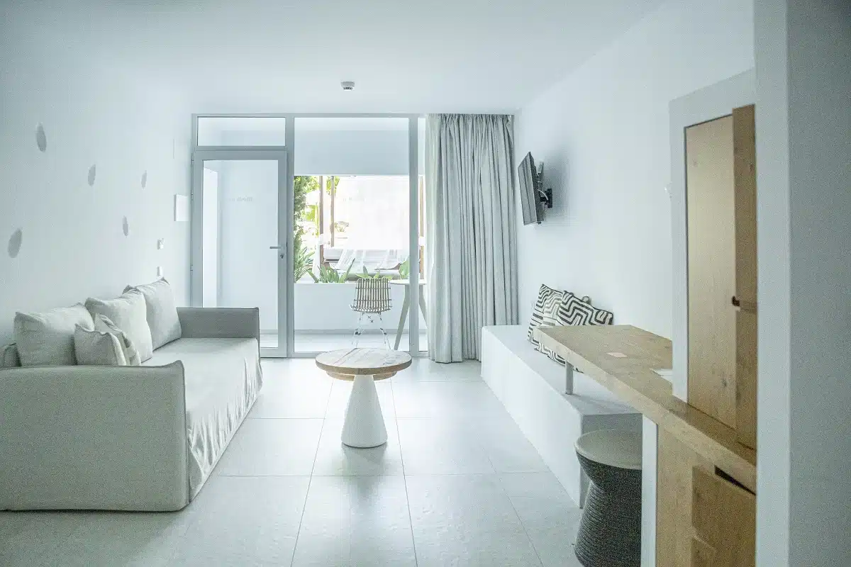 As a boutique hotel, it also offers a solarium space where guests can spend the day unwinding on Balinese beds or embark on an excursion to the nearby Es Pinet or Es Pouet beaches, just a five-minute walk from Boutique Hotel and Spa Las Mimosas. Furthermore, within a 15-minute drive, visitors can discover numerous coves, including the renowned Cala Bassa and Platges de Comte.