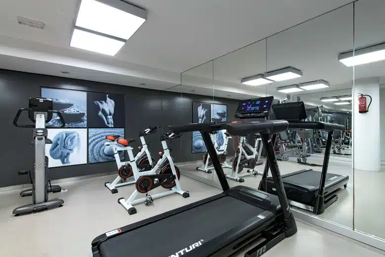 Guests enjoy free access to the spa circuit, which includes a Jacuzzi, Turkish bath, steam room and massage services, as well as a compact gym for keeping fitness routines on track or complementing a game of tennis.