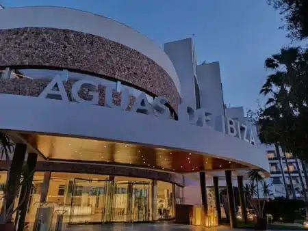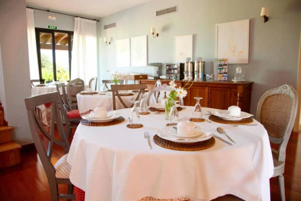 The Hotel-Agroturismo Can Jaume is nestled amidst pools, fountains, and orange groves, offering a serene natural setting just a stone’s throw from the city. The swimming pool is surrounded by lush gardens, creating a tranquil retreat. The decor in both the rooms and communal areas is simple yet elegant, reflecting the traditional Ibizan style.