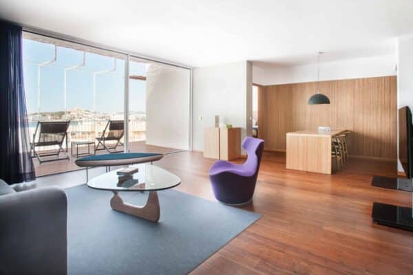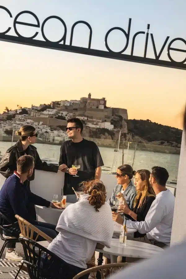 The hotel’s architecture, inspired by Miami’s South Beach, has firmly established Ocean Drive Ibiza as an iconic landmark on the island. Undoubtedly, its prime location opposite the Marina Botafoch yacht harbour, coupled with breathtaking views over Ibiza’s historic old town, has greatly contributed to its reputation.
