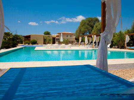 Agroturismo Xarc is a delightful rural retreat set within a five-hectare estate brimming with lush vegetation, nestled at the foot of Puig d’Atzaró in Santa Eulalia, Ibiza. This traditional farmhouse was completely renovated in 2005, retaining its classic Ibizan charm with characteristic stone walls and wooden beams. Offering a tranquil, cosy, and welcoming atmosphere, the rural hotel features eight double rooms and a private suite, all fully equipped to make you feel at home.