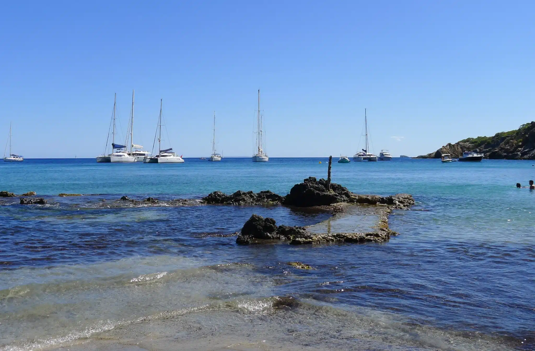 Known for its distinctive dark grey sandami, a rarity in Ibiza, Cala Boix provides an ideal setting for those seeking tranquillity and natural beauty.