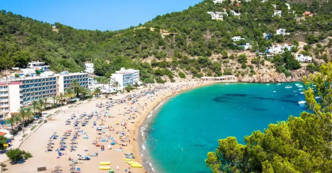 Cala de Sant Vicent, a stunning beach on the northeastern coast of Ibiza, is a must-visit for any person seeking sun, sand and serenity. This beach, with its crystal-clear waters and fine sand, surrounded by lush pine-covered hills, is a true paradise for anyone seeking a day of beach and relaxation.