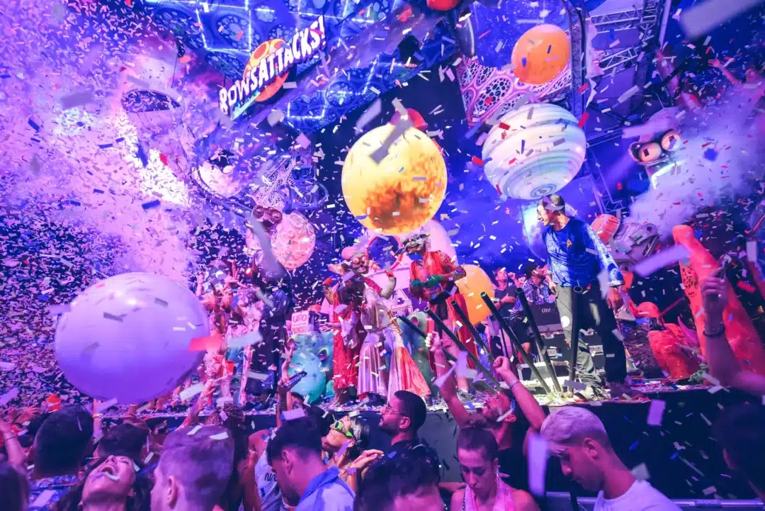 Each Elrow event at Amnesia is a sensory explosion, combining top-tier tech house music with elaborate decorations, colourful costumes, and immersive performances. The atmosphere is one of unbridled joy, where attendees can expect to be showered in confetti, surrounded by giant inflatables, and entertained by roaming actors and acrobats.