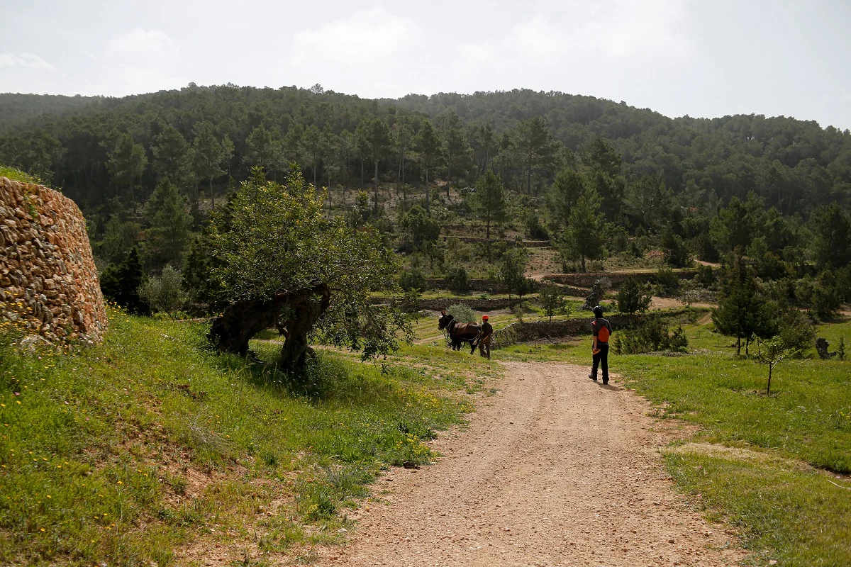 Behind the village stretches the Pla de Corona, a vast, protected plain that glows with almond blossom in late winter and turns golden in summer. Walk one of the paths that cross the fields, breathe in the scent of rosemary and pine, and listen to the wind rustling through the branches. It is an image of Ibiza that few visitors ever see — raw, quiet and breathtaking in its simplicity.