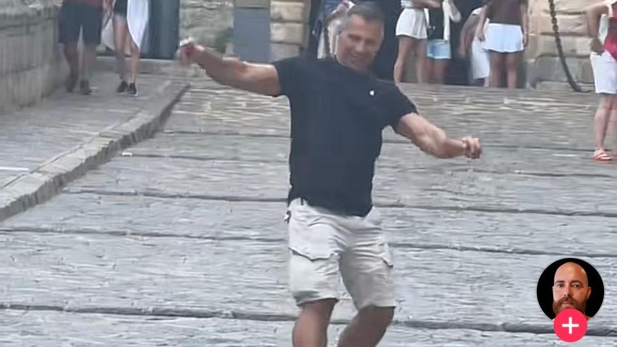 In the images you can see how a tourist dressed in shorts and polo shirt slides down the ramp up to Dalt Vila, which was soaked. The scene has generated funny comments, but also of concern: “I’m going soon to Ibiza, I hope the weather is good,” said a user.
