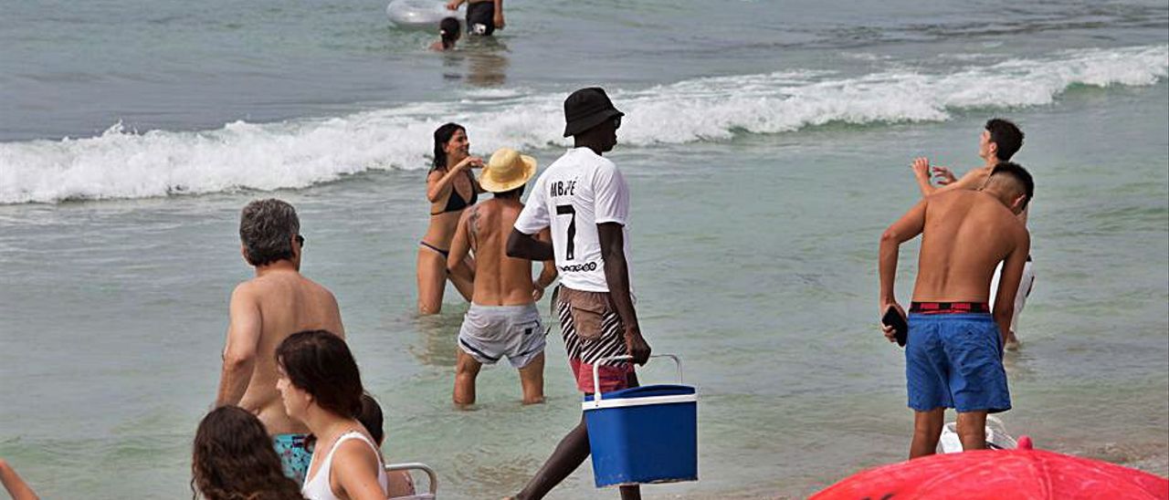 Street vending continues to be a constant on the beach of ses Salines despite the fact that it has decreased slightly since the beginning of the pandemic. The workers of the businesses in this area claim that the police presence is minimal and that the problem is reactivated as soon as the agents leave. Some bathers, on the other hand, admit that they buy from these sellers because of the “prohibitive prices of the beach bars”.