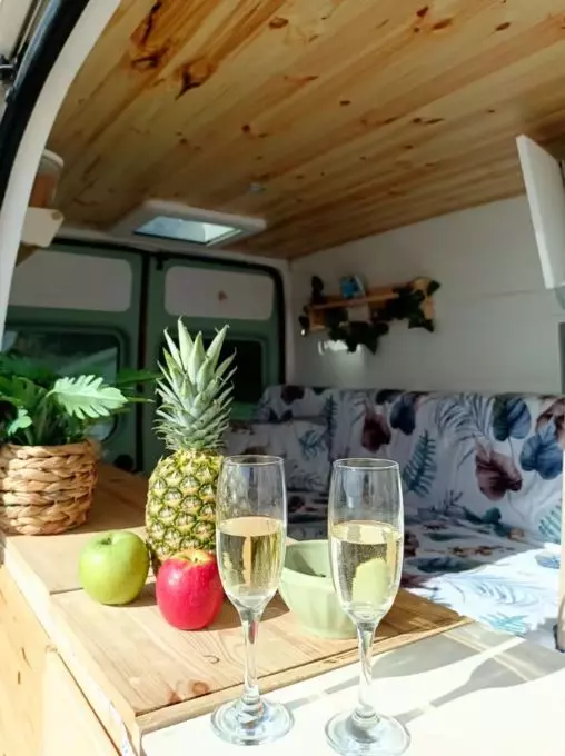 The van features a 140×200 bed that “allows you to sleep fully stretched out”. In addition, it has “large panoramic windows, which even on rainy or cold days, allow you to have beautiful views without having to open the doors. Its dark color gives you all the privacy during the day, as it does not allow visibility from the outside,” the ad describes.