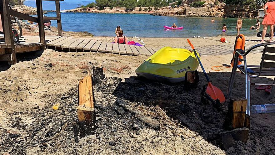 Although the lifeguards still do not know when a new booth will be installed, the City Council, the Local Police and the Civil Guard approached the beach yesterday to gather as much information as possible. According to two lifeguards who were working in the area this Sunday, some colleagues suspect that the fire was caused by a “conflictive” person from the lifeguard sector and that on Saturday they were in Cala Gració. One of them explains that a coordinator of the lifeguards received a threat: “I arrived at Cala Gració at 10, but I came from Es Pouet and in the tower there we received a kind of threat directed at one of the lifeguard coordinators”, he explained yesterday to this newspaper. Therefore, it is inferred that it could have been intentional.