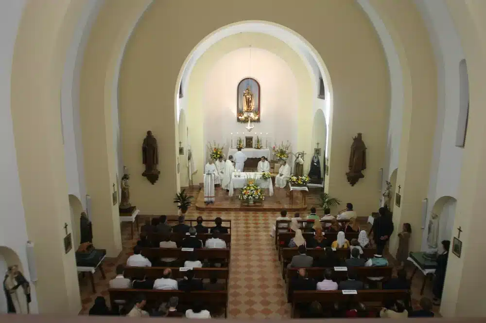 The church is dedicated to the Virgin Mary of Mount Carmel, with the titular image of the Virgen del Carmen being blessed on 16th July 1941. The wooden altar and tabernacle, crafted by artisans Román and Salvador, were added in 1958, further enhancing the interior’s simple yet elegant design. The two chapels on either side of the presbytery, which were part of the original oratory, are dedicated to the Holy Christ and the Virgin of Sorrows, as well as to the Sacred Heart of Jesus.