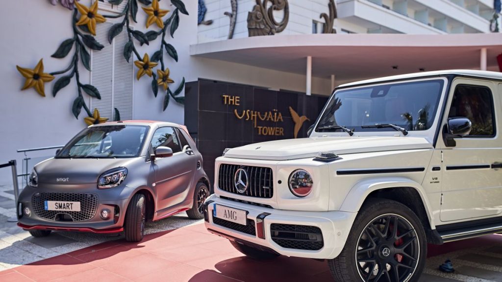 Presentation of Mercedes-Benz vehicles at the Ushuaïa Ibiza Beach Hotel. He also explained that “another of this year’s novelties is that we offer a solution for the most sophisticated clients, since we will have at their disposal these high-end vehicles from Mercedes-Benz, AMG ”. Both Smart Ushuaïa and EQ Power will be available to customers through Class Rent a Car and the hotel’s own website.