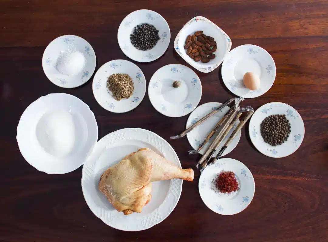 - Spices: a blend of spices, including cinnamon, saffron, and sometimes cloves and allspice, adds aromatic warmth to the sauce.