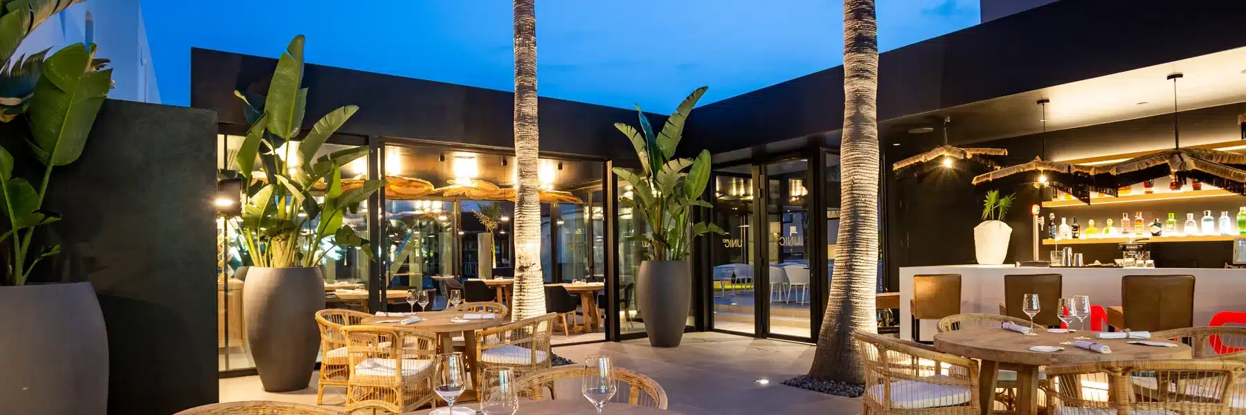 Unic Restaurant is located in one of the island’s nerve centres, Playa d’en Bossa, where at one end stand the Renaissance city walls of Dalt Vila and, at the other, Torre des Carregador watchtower, the construction of which precedes the 18th century.