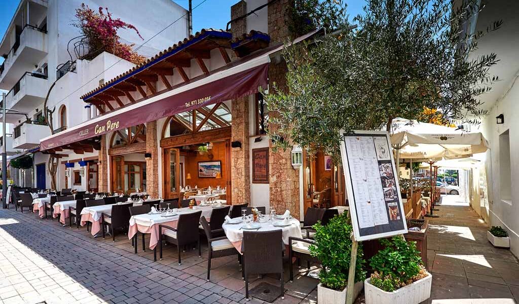 Celler Can Pere restaurant is one of the very first to open in beautiful Santa Eulalia del Rio. A popular destination where local people gather with their families to eat and enjoy home-grown products including fresh fish every day.