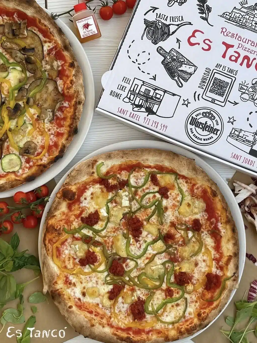 Es Tancó’s Ibiza Town location is a dedicated takeaway and delivery hub, offering the same authentic wood-fired pizzas that have made the brand a local favourite.