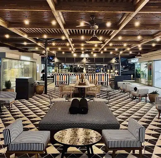 The terrace’s French-style design adds an air of elegance, making it a favorite spot for both tourists and locals. By night, the vibe shifts as the restaurant transforms into a hotspot with live music from local DJs and artists, creating a lively and unforgettable atmosphere.