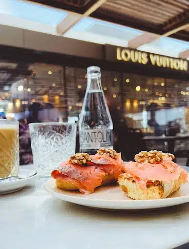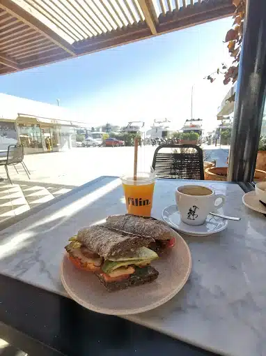 Filin’s menu is designed to accommodate every moment of the day. The day begins with a range of healthy breakfast options, including toast with avocado, fresh fruit juices, and gourmet coffee, making it the perfect place to kick off your morning in style. Lunchtime brings a variety of fresh salads, seafood dishes, and takeaway options for those heading out to sea.